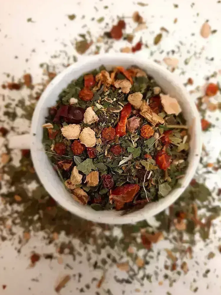 Bylinná směs byla pečlivě sestavena s ohledem na podporu vašeho imunitního systému napomáhá zlepšení vašeho celkového zdraví. Obsahuje řadu bylin, které jsou známé svými pozitivními účinky na imunitní systém, jako je "echinacea, šípek, černý rybíz, pampeliška, kopřiva" a další bylinky. Bylinná směs "Imunita" je skvělým způsobem, jak posílit svou imunitu a zůstat zdraví po celý rok.